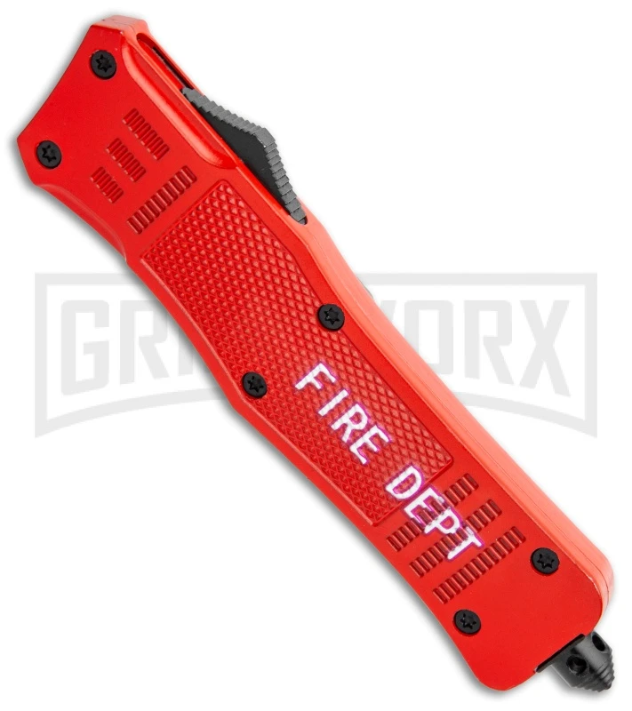 Atomic Defender Large OTF Automatic Knife Fire Dept. Red – Serr Two Tone Dagger