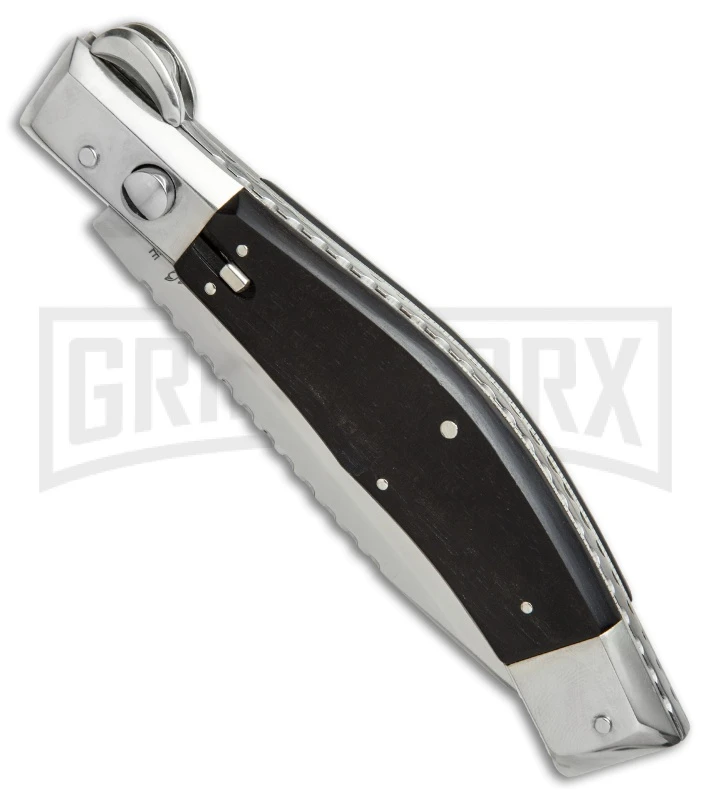 Lepre 10′ Ebony Wood Picklock Automatic Knife Fileworked – Satin Plain