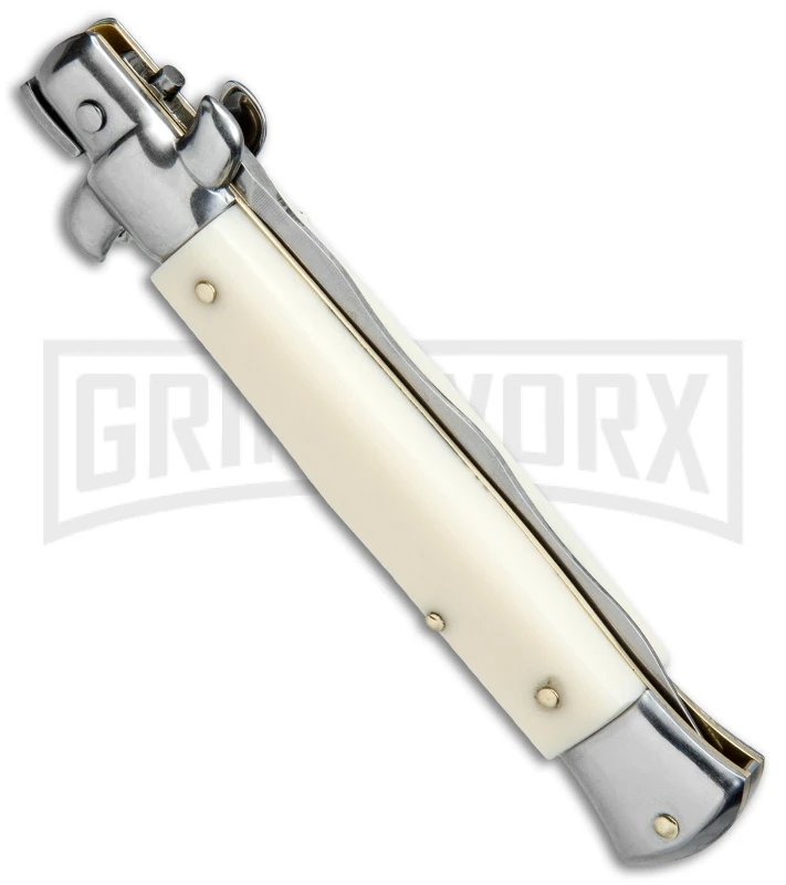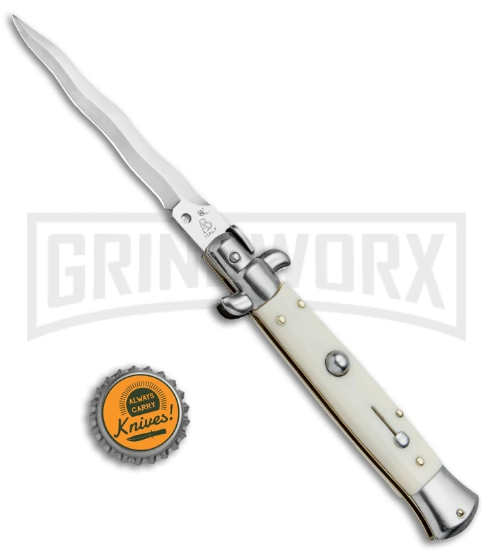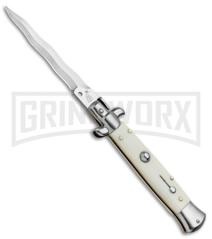 SKM/AB 9″ Sim Ivory Automatic Stiletto Knife – Satin Kris